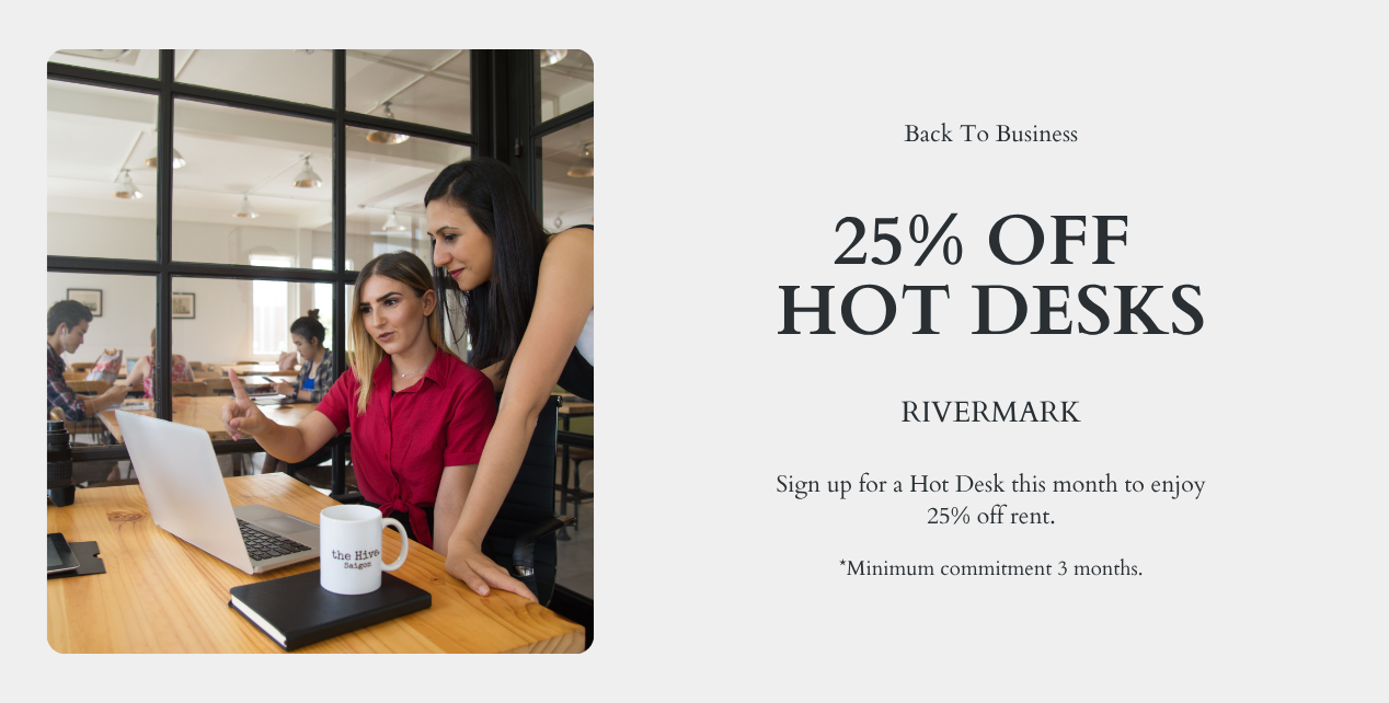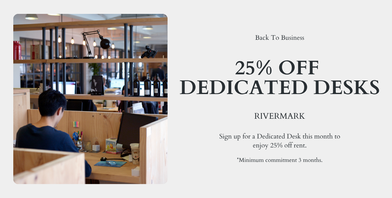 Sign up for a Dedicated Desk this month to enjoy 25% off.